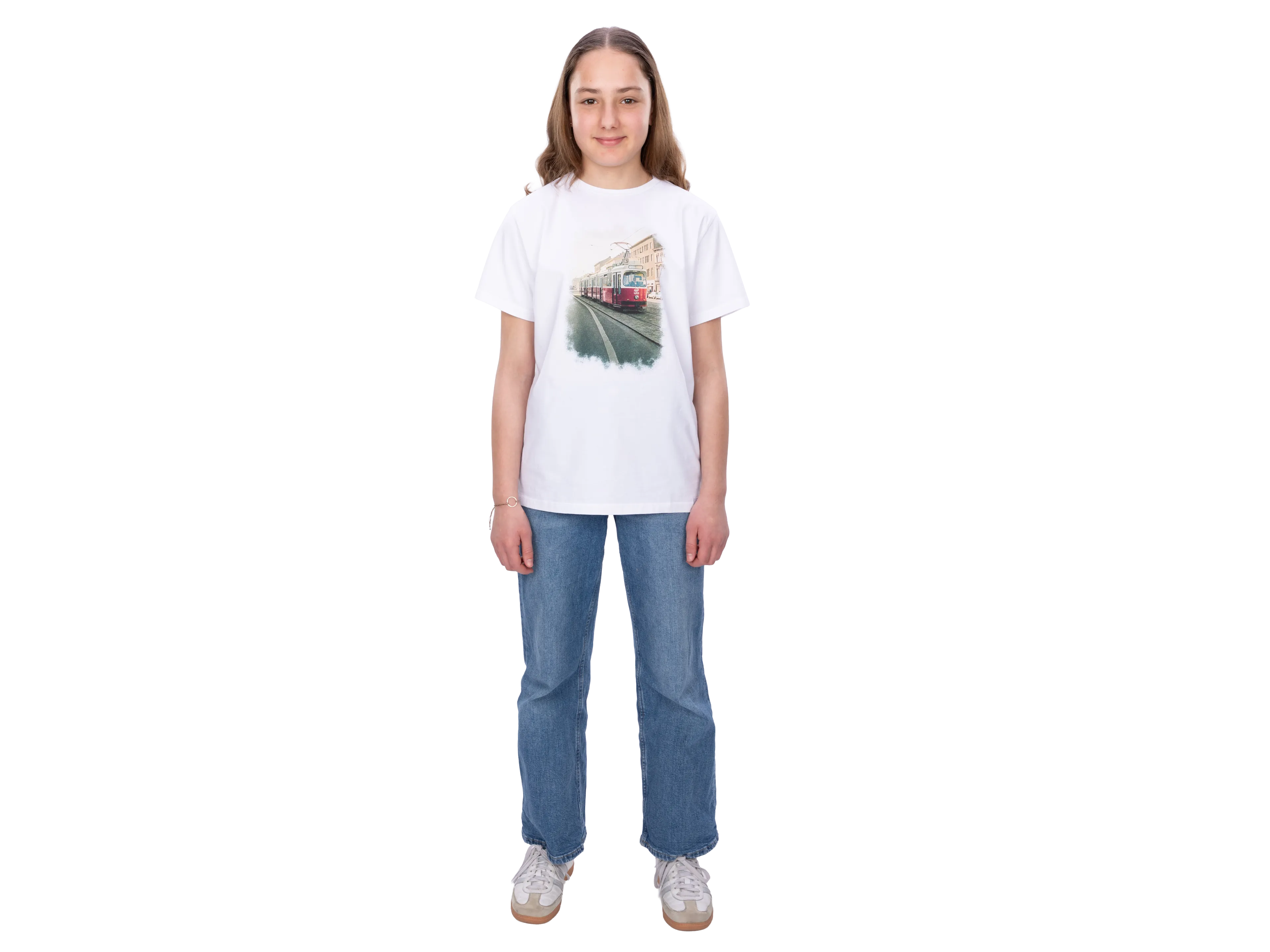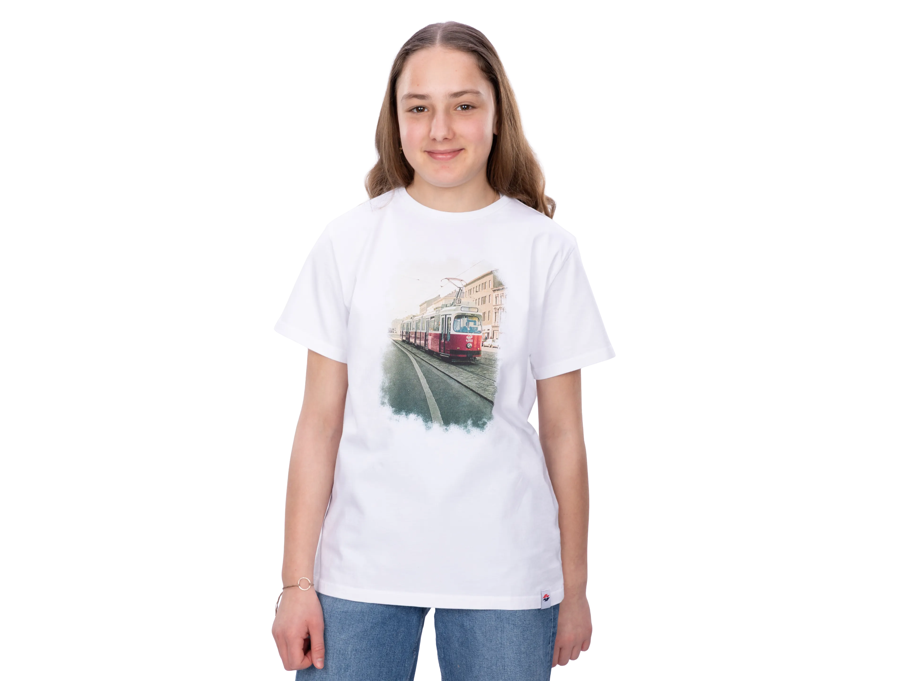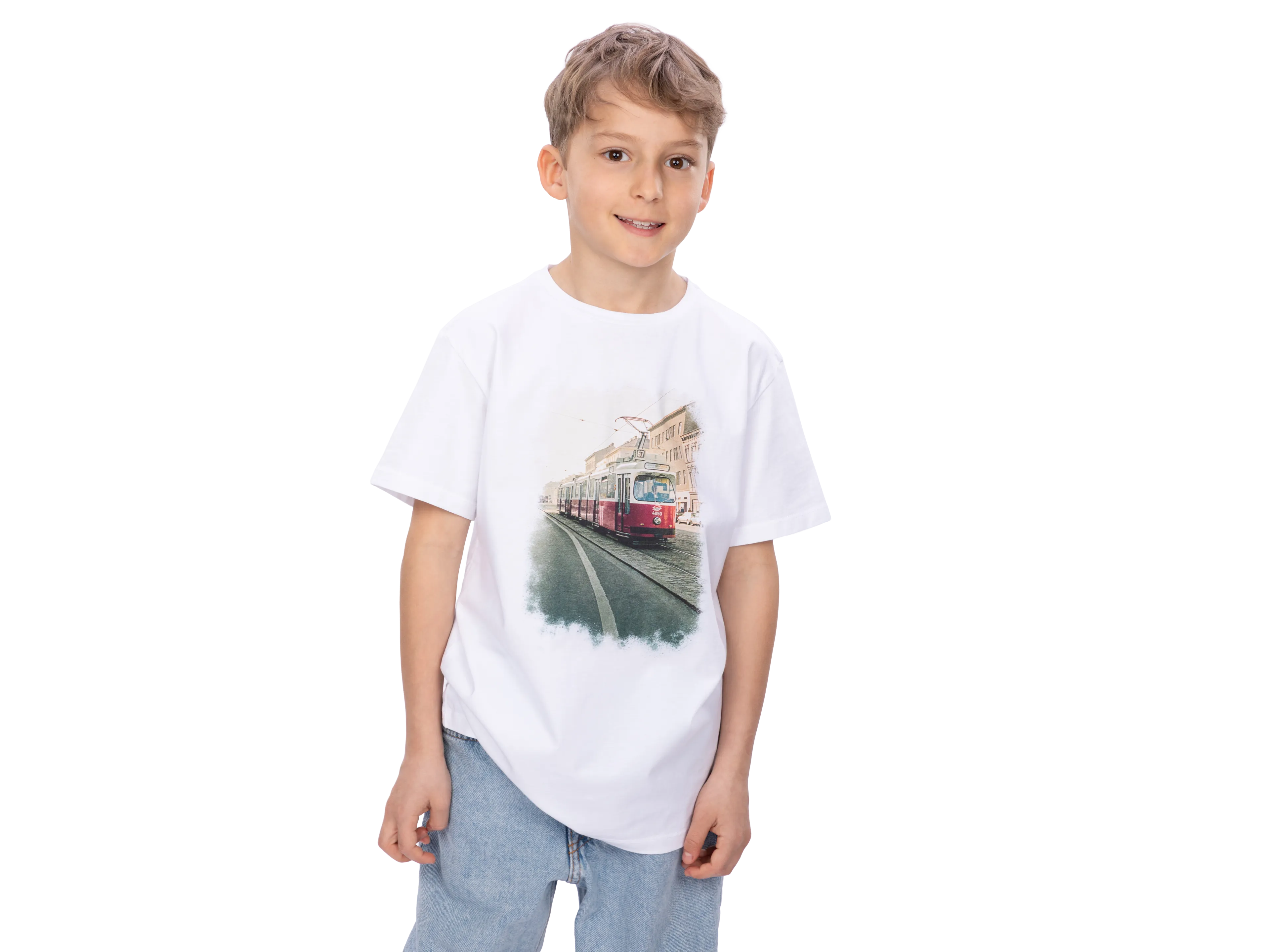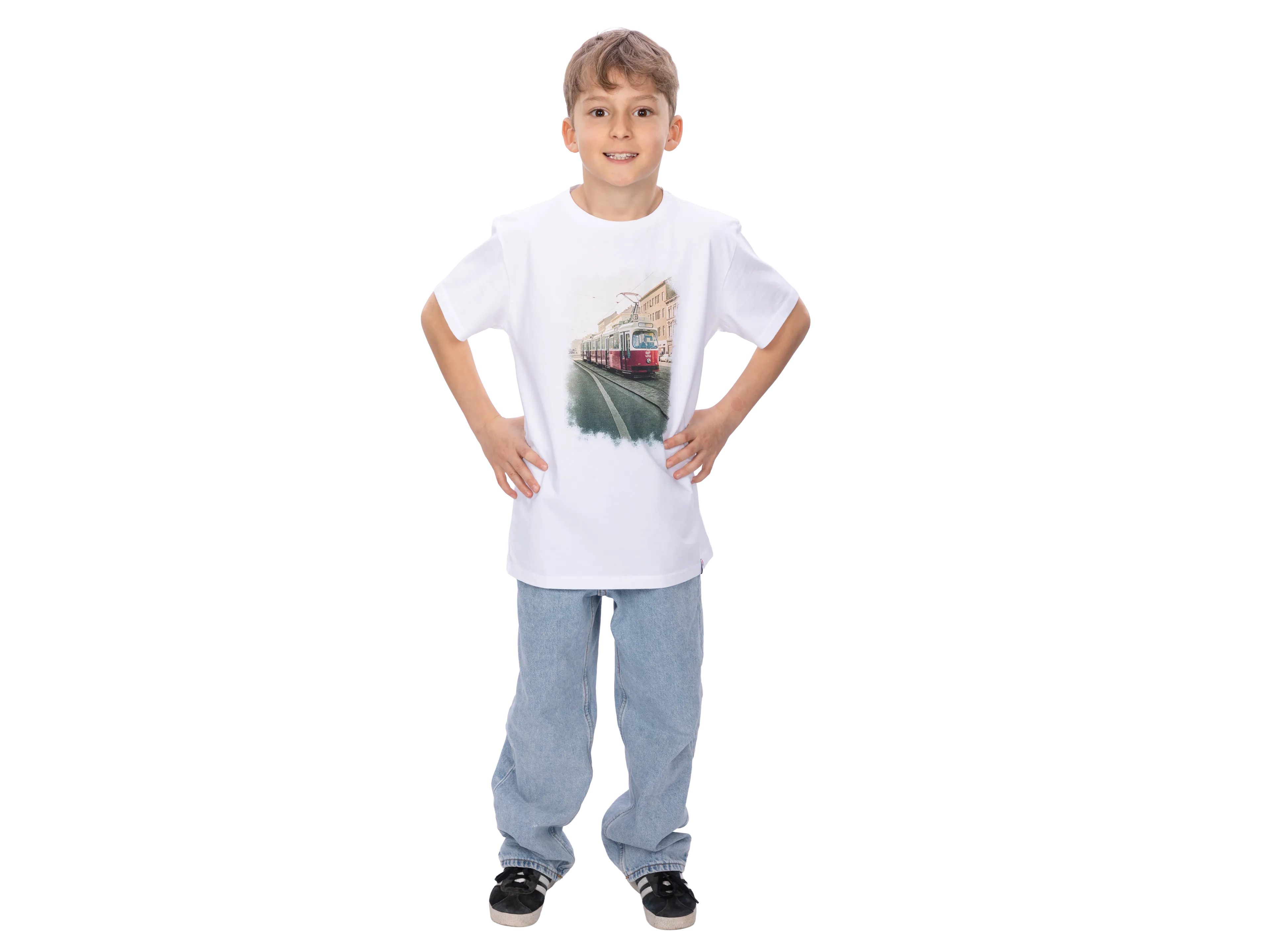 Mit Vollgas ins Abenteuer mit unseren Fahrzeug T-Shirts für Kinder!Das weiße T-Shirt mit Aufdruck einer E2 -Straßenbahn ist perfekt für jeden Anlass – ob für den Spielplatz, die Schule oder einfach zum Herumtoben. Das farbenfrohe Motiv auf der Vorderseite sorgt bei Groß und Klein für staunende Gesichter. Zusätzlich verleiht die nachhaltige und hautfreundliche Bio-Baumwolle dem T-Shirt ein angenehmes Tragegefühl.