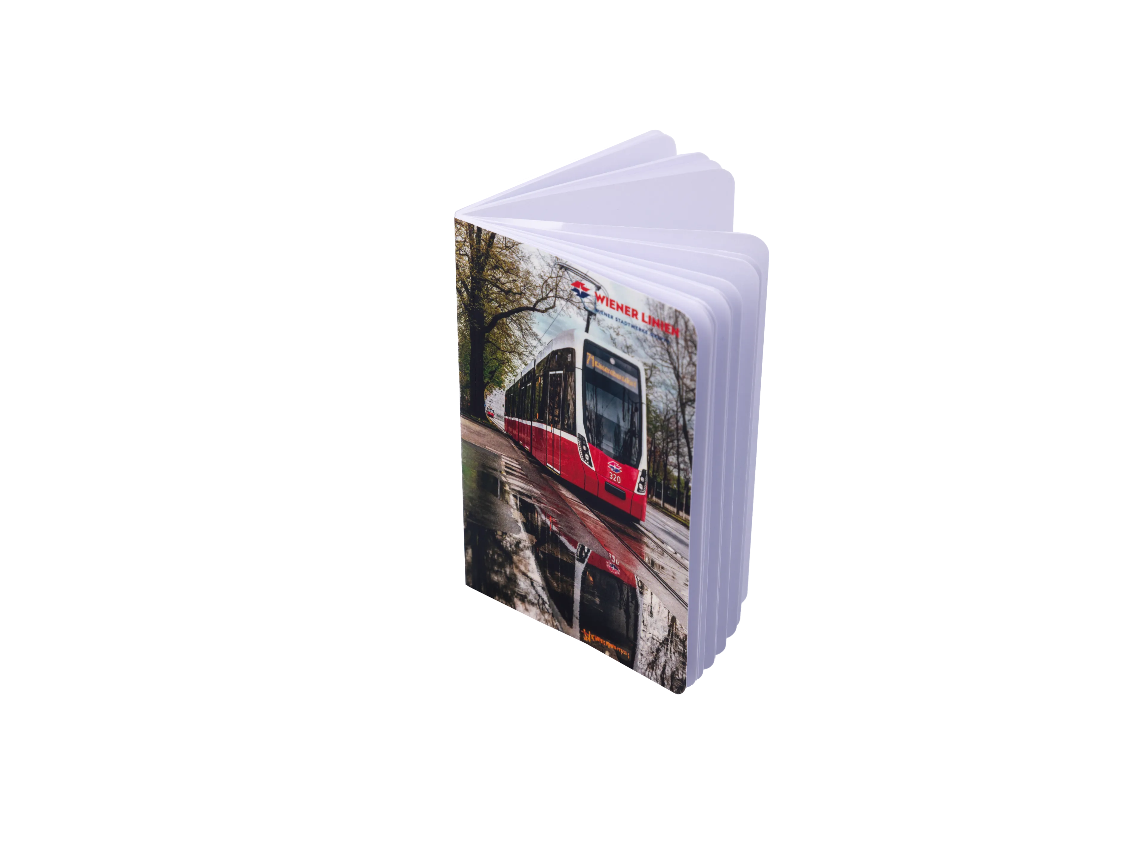 Das A7-Notizbuch bietet genügend Platz für deine Ideen, Skizzen und Mitschriften. Ob in der Schule, im Büro oder Zuhause – es ist vielseitig einsetzbar und dank der praktischen Größe kannst du es sogar in deiner Hosentasche verstauen. Den Einband ziert eine moderne Flexity-Straßenbahn in kräftigen Farben. Das zeitlos schöne Design verzaubert nicht nur Öffi-Fans, sondern auch Schreibwaren-Liebhaber*innen.