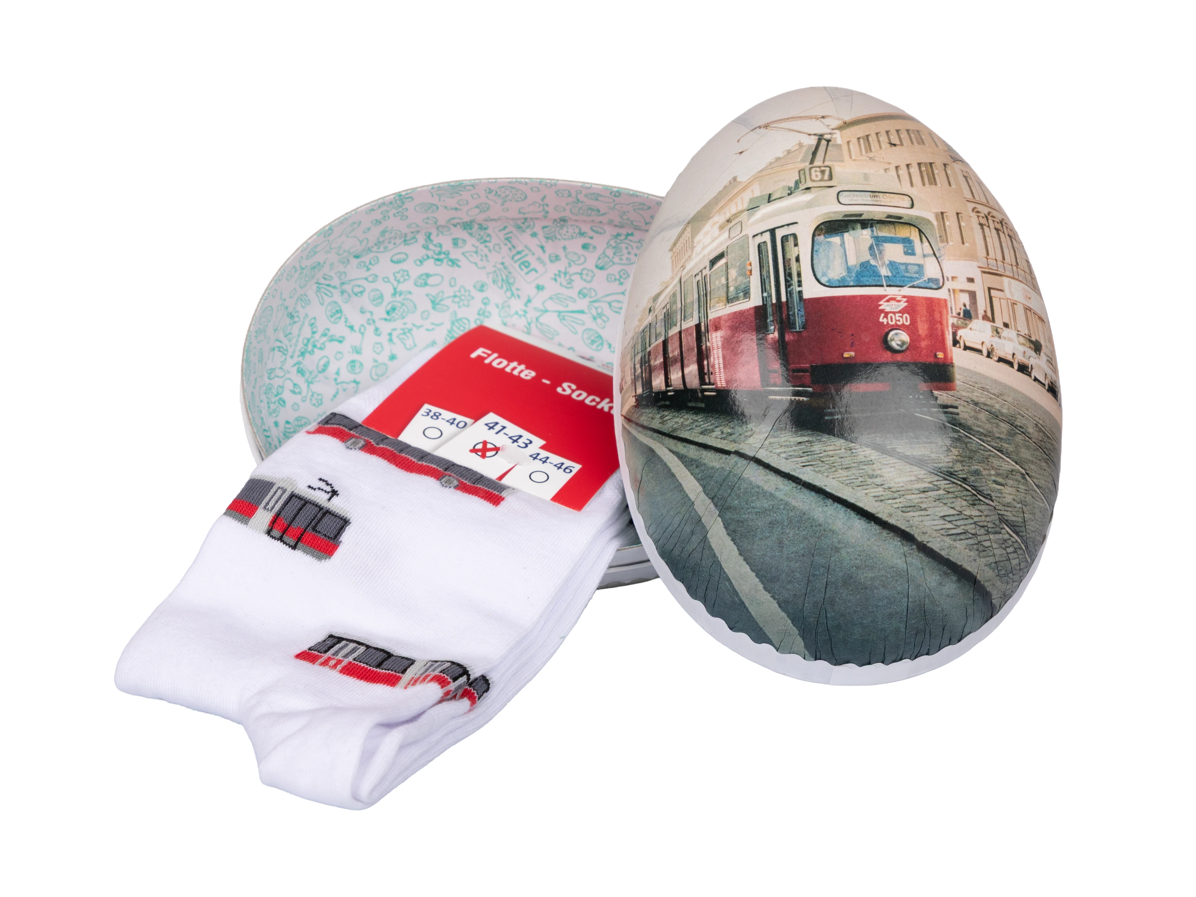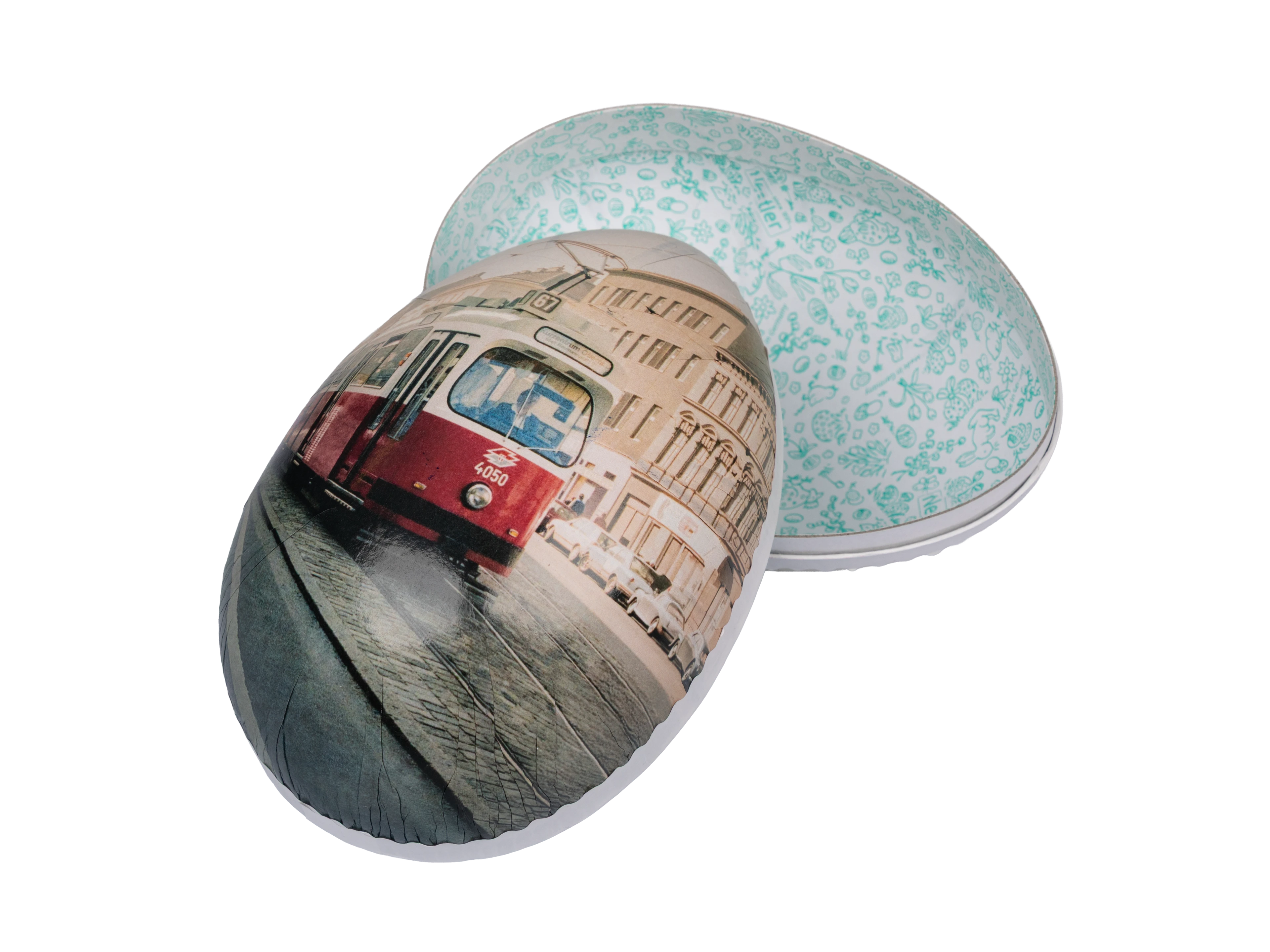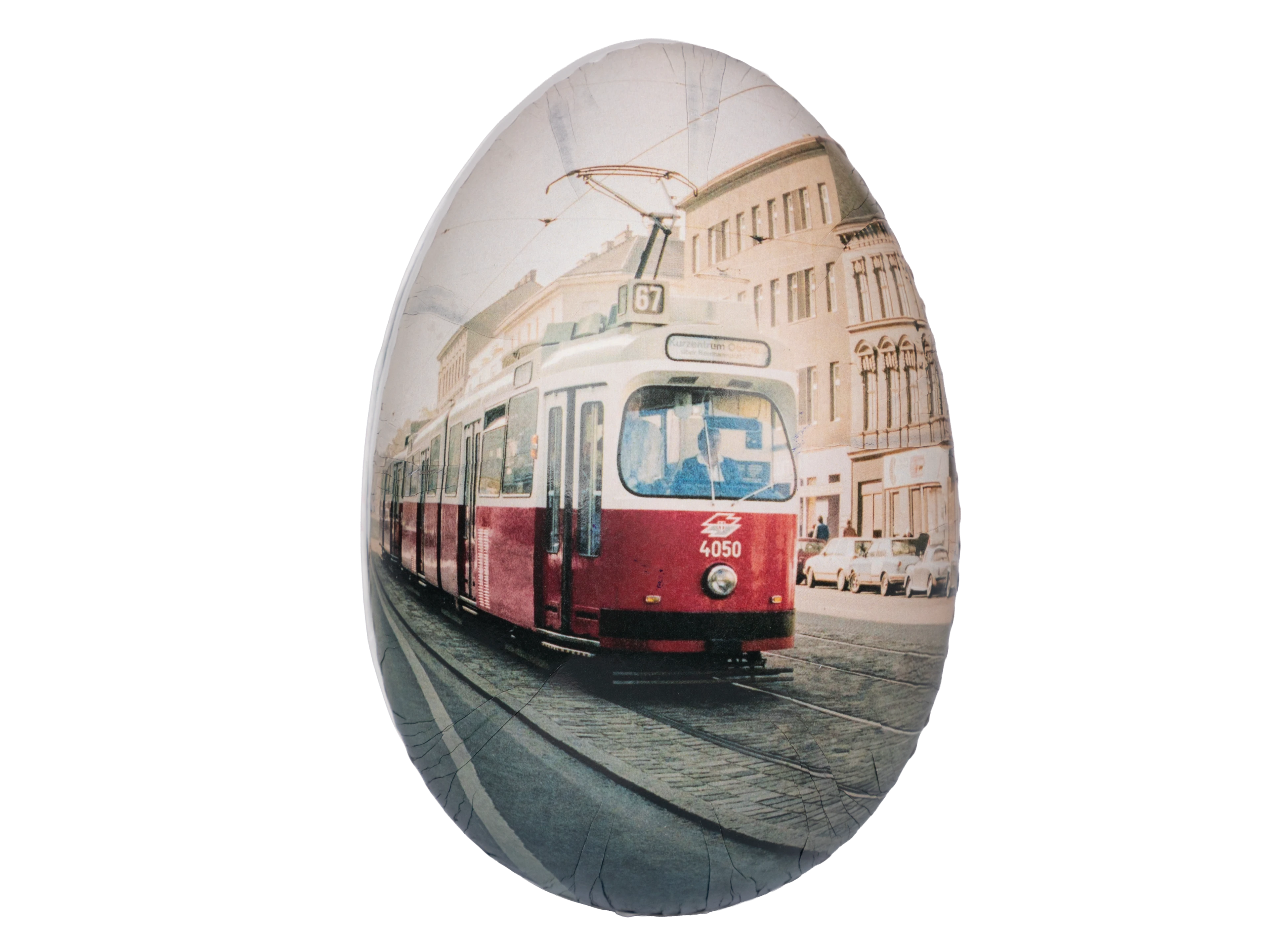 Das Papp-Osterei zum Befüllen eignet sich perfekt zum Verschenken, Dekorieren und Wiederverwenden. Das Motiv der roten E2-Straßenbahn macht das Ei zu einem echten Highlight im Osternest. Es besteht aus festem Karton und lässt sich problemlos öffnen und wieder verschließen.
