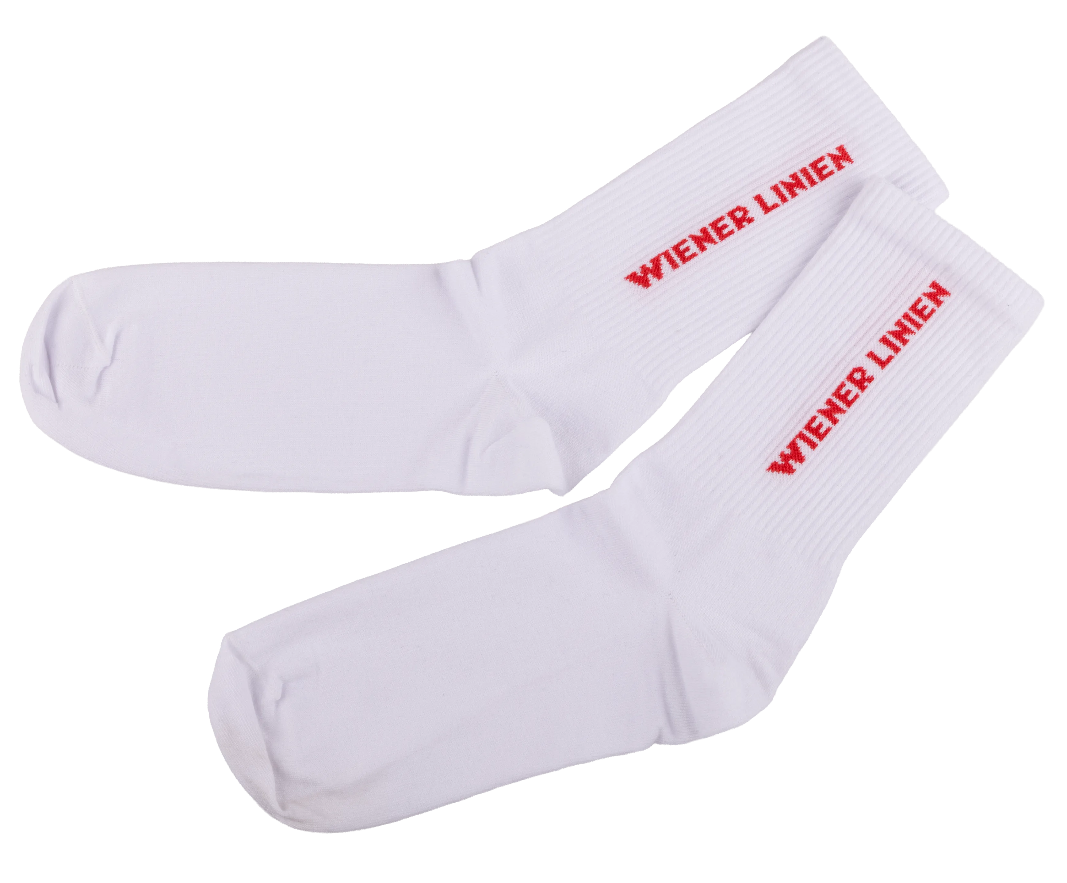 Die Sportsocken mit Wiener Linien Schriftzug sind sowohl im Alltag als auch beim Sport ein echter Hingucker. Die zweifarbige Kombination aus roter Schrift und weißen Socken ist durch die Schlichtheit mit vielseitigen Outfits kombinierbar.