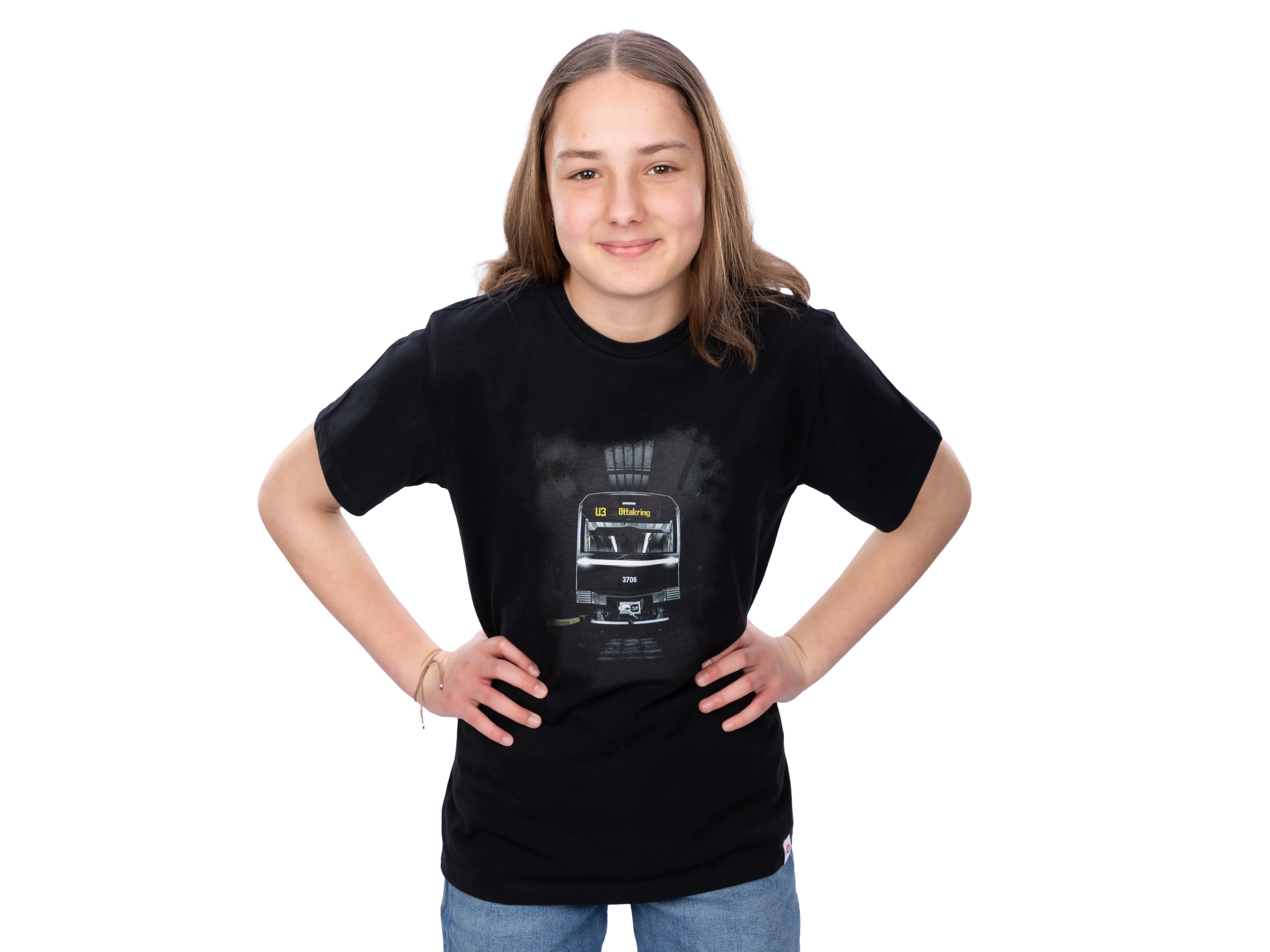 - Looplabel mit Wiener Linien Raute am unteren T-Shirt-Abschluss