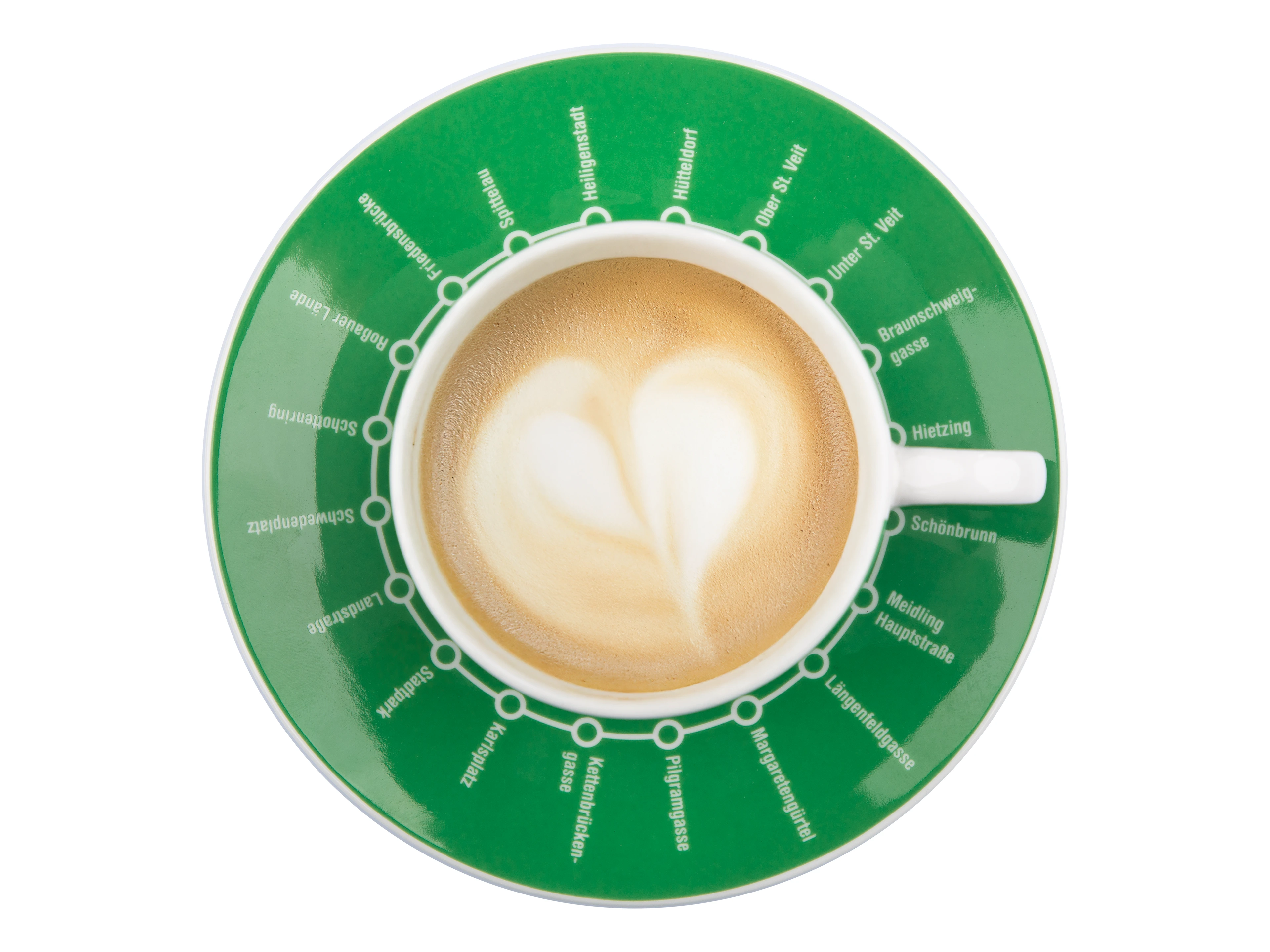 Add the underground lines to your breakfast table or afternoon coffee. Start your day right and immediately get into a good mood with our bright U4-cup. The additional saucer protects your table from coffee or tea stains and leaves enough space for your favourite treat.
