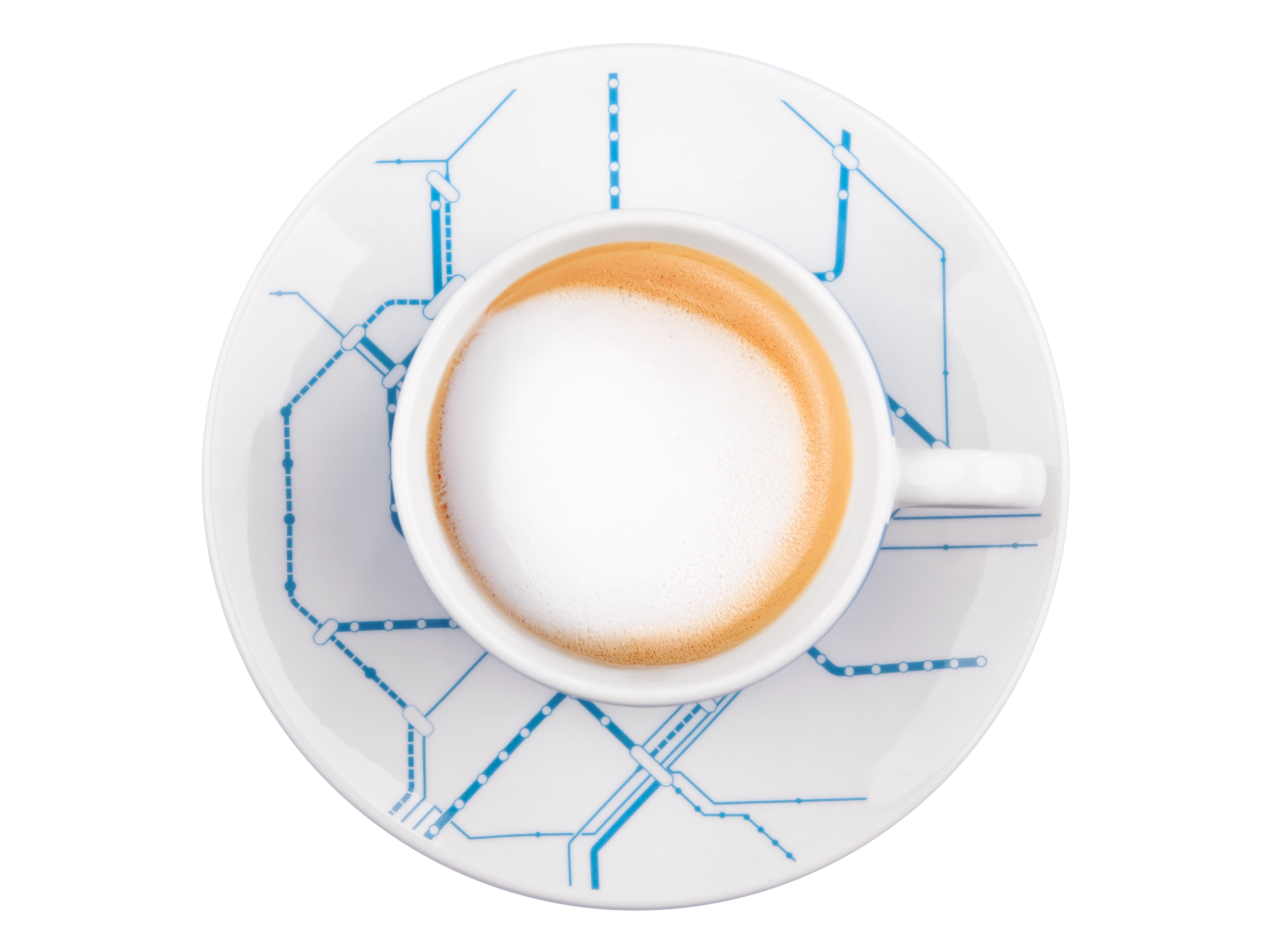 Add the underground lines to your breakfast table or afternoon coffee. Start your day right and immediately get into a good mood with our blue underground-cup. The additional saucer protects your table from coffee or tea stains and leaves enough space for your favourite treat.