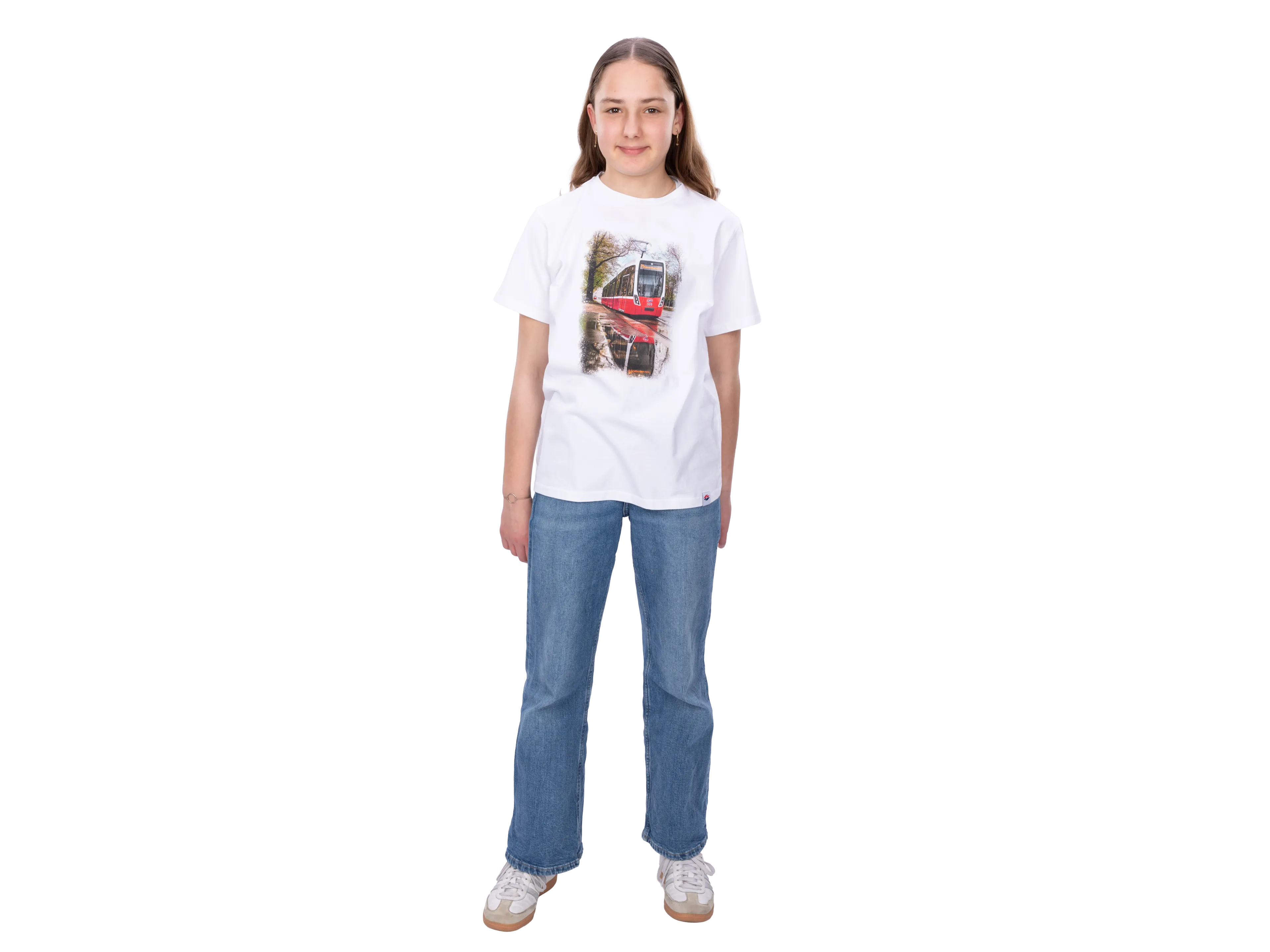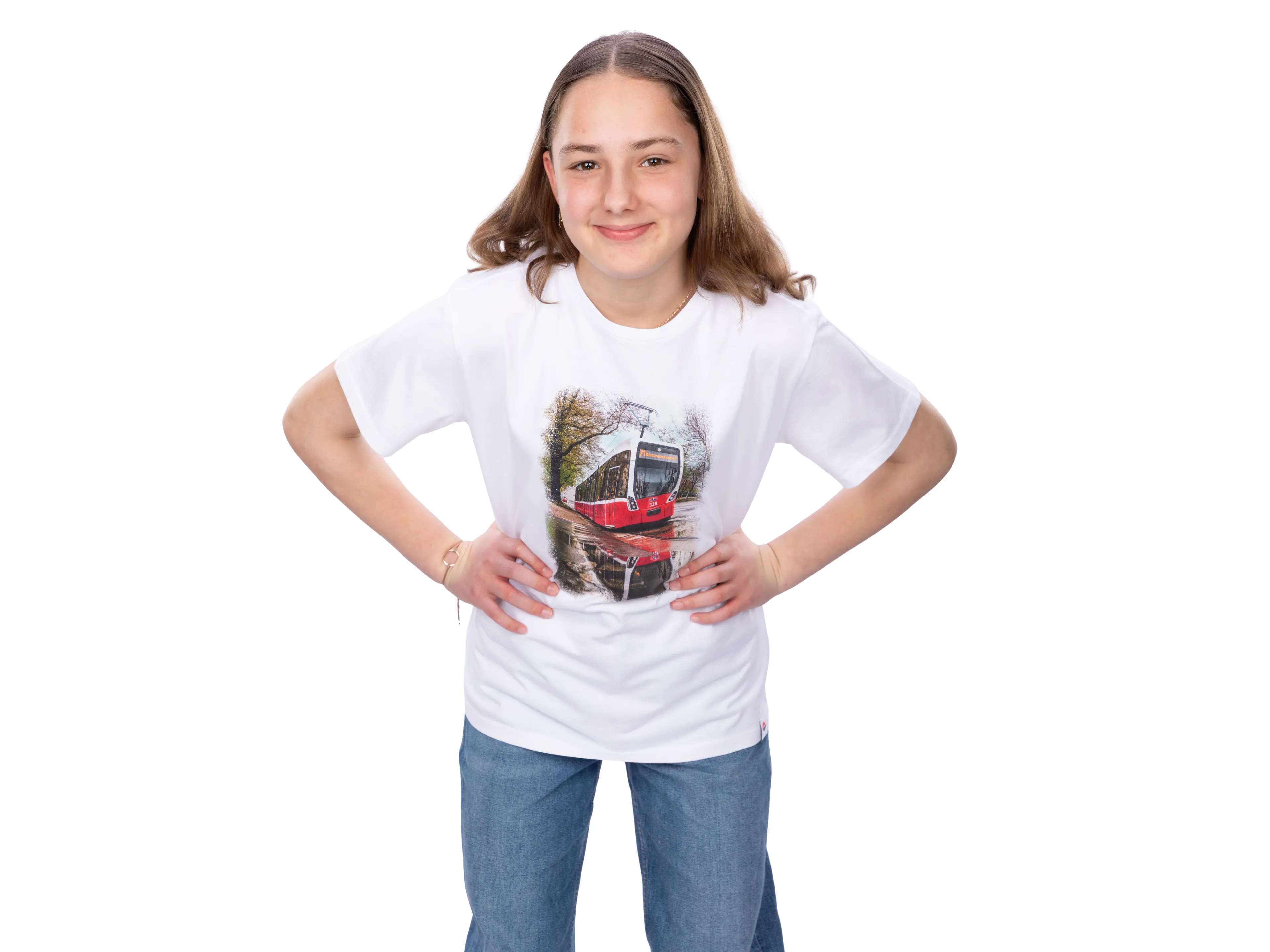 Full speed ahead into an adventure with our vehicle T-shirts for children! The white T-Shirt with Flexity tram print is the perfect fit for every occasion - whether for the playground, school or simply for running around. The colorful motif on the front amazes old and young. The sustainable and skin-friendly organic cotton additionally provides a pleasant wearing comfort.